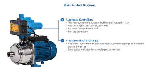 - Pressure-boosting solutions for residential and light commercial water supply