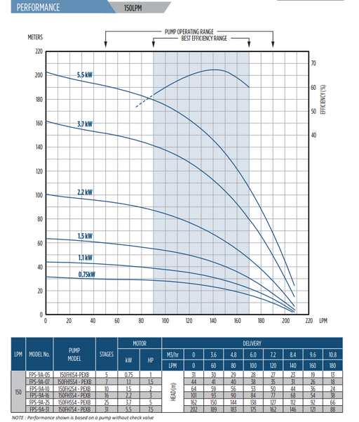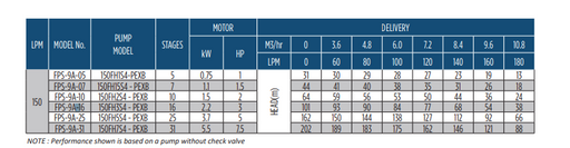 View full details4" FPS 4400 High Capacity Submersible Pump FPS-9A-16 - 2.2KW PSC Motor - 9 m3/h - 150 LPM - PMA WITH 1PH PSC CONTROL BOX